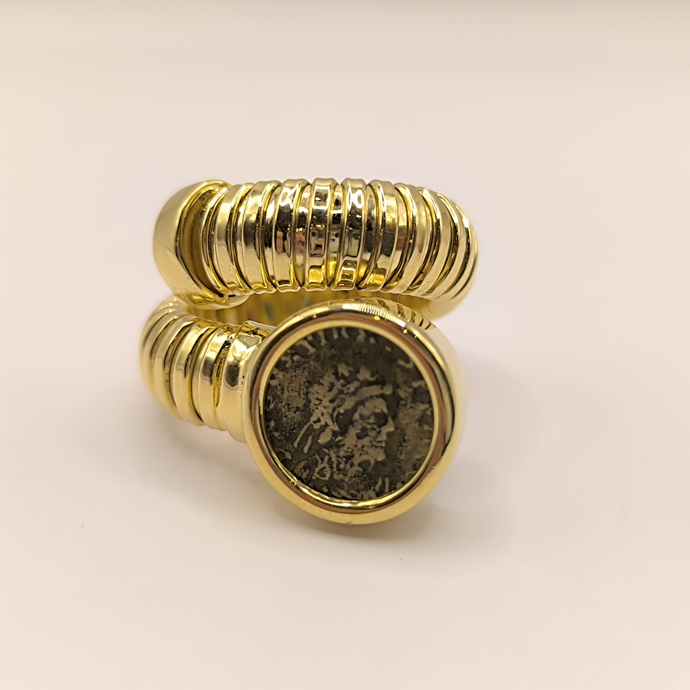 Linea artigianale veneta realizzata a mano in acciaio rodiato ed argento con bagno oro 18kt.