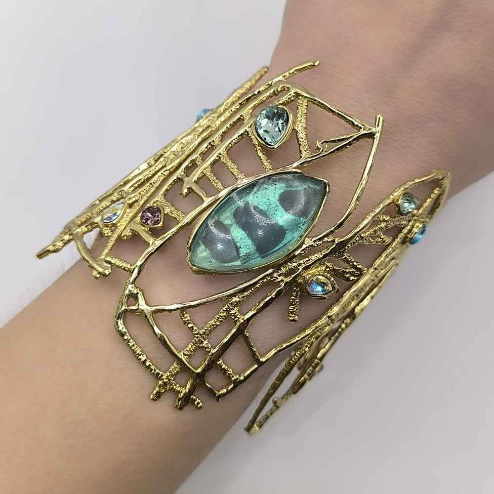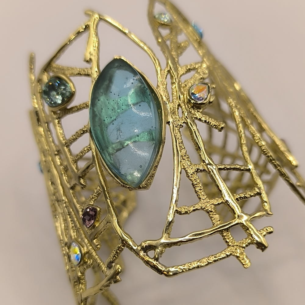 Linea artigianale veneta anallergica realizzata a mano in lega di argento ed acciaio rodiato con bagno in oro 18kt, pietre naturali, quarzi e Swarovski.