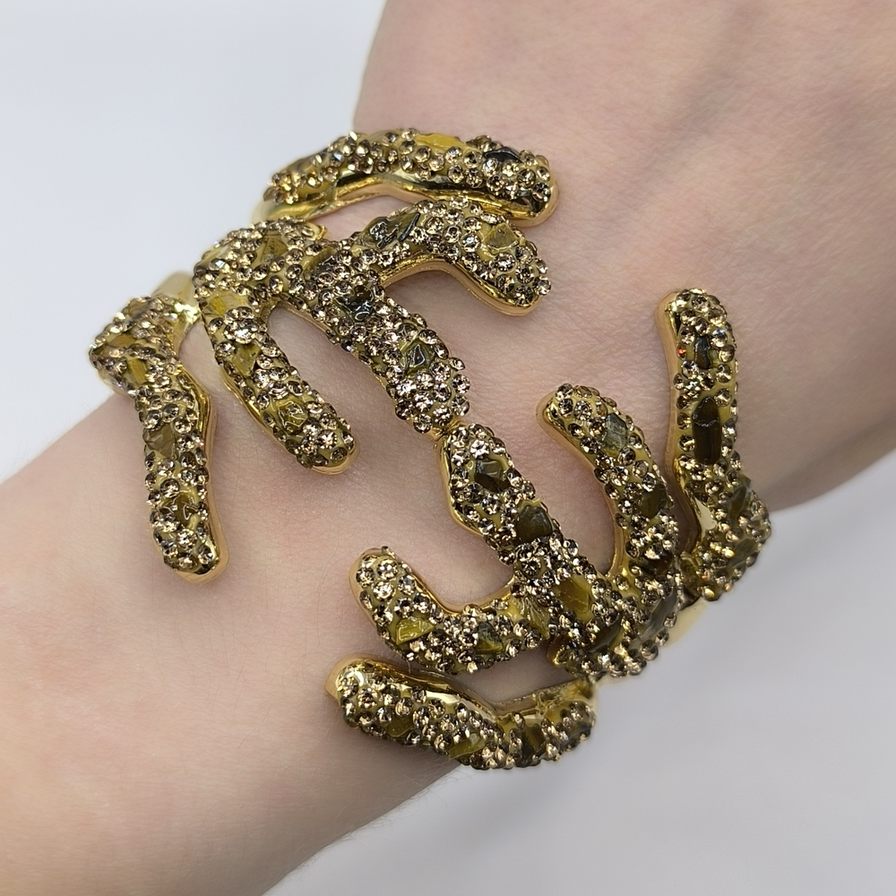 Linea artigianale veneta anallergica realizzata a mano in lega di argento ed acciaio rodiato con bagno in oro 18kt, pietre naturali, quarzi e Swarovski.