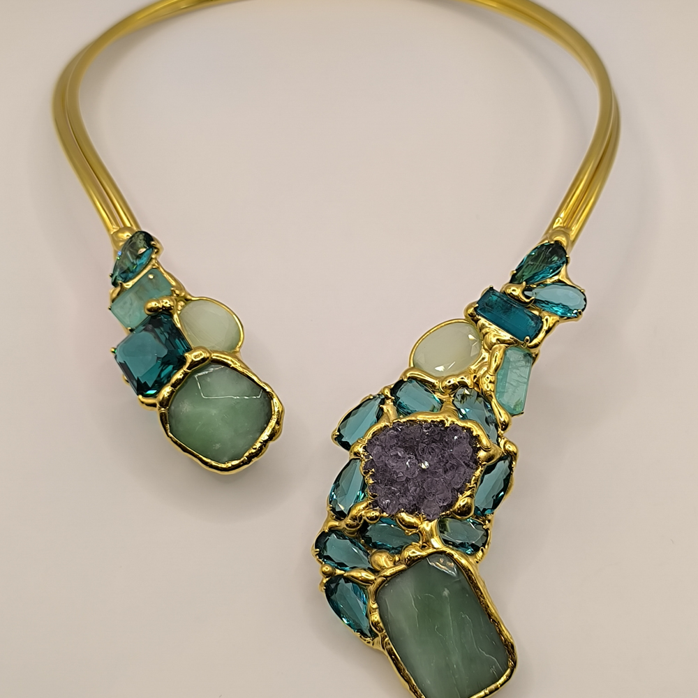 Linea artigianale veneta realizzata a mano in acciaio rodiato ed argento con bagno oro 18kt.