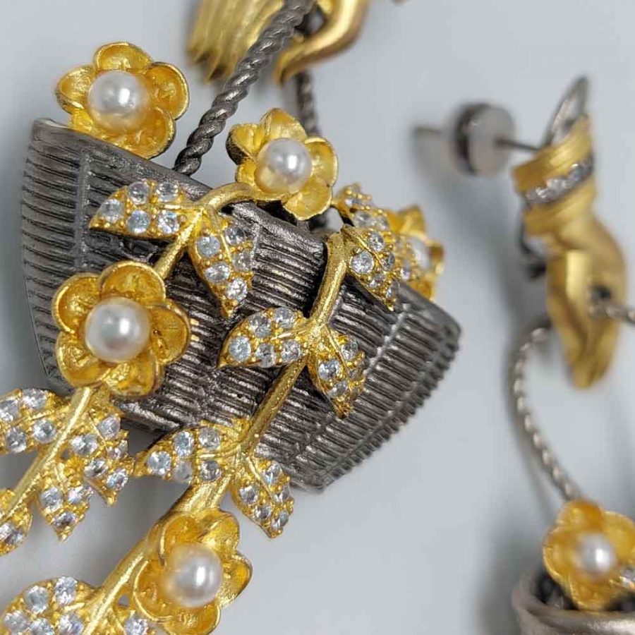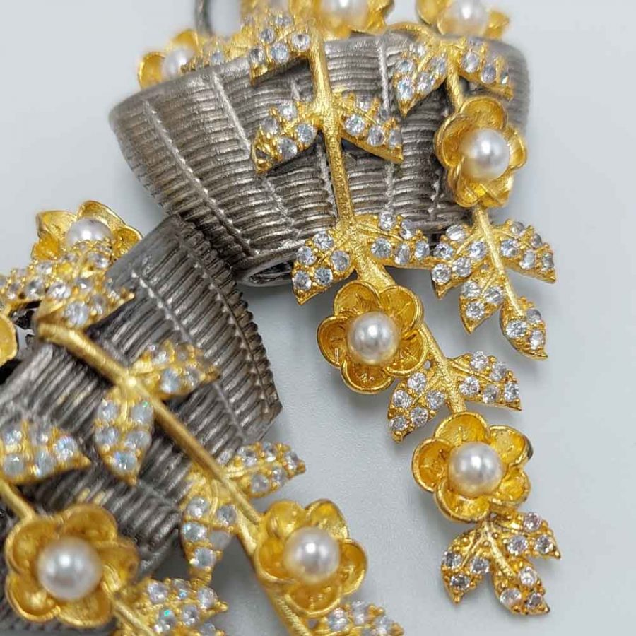 Le pietre incastonate sono quarzi o cristalli swarowski con zirconi.
